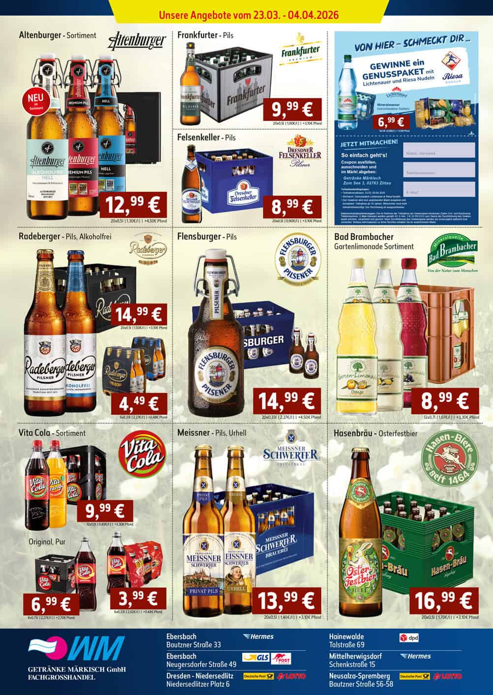 Bei uns findest du mehr als nur Getränke – du findest ein Stück Heimat. Unsere Filialen stehen Gastronomen, Unternehmen und Privathaushalten offen. Wir bieten eine umfassende Auswahl an Speisen, Getränken, Eventzubehör und vielem mehr.